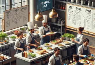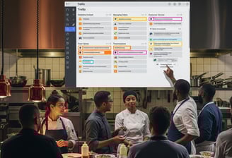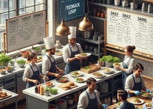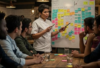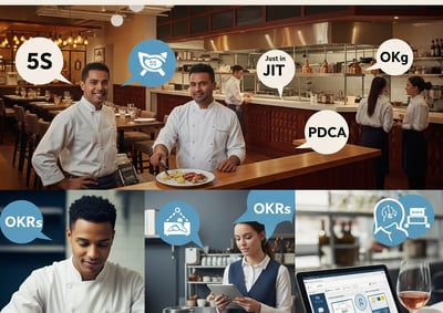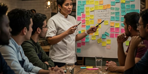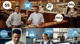 * Nossa consultoria foca em otimizar diversas áreas do seu negócio, desde a organização e eficiência da cozinha e salão (aplicando conceitos como 5S) até o controle de custos e padronização de pratos com fichas técnicas. Também trabalhamos a gestão do fluxo de trabalho (Kanban), a otimização de estoques (Just in Time), a resolução estruturada de problemas (PDCA) e o desenvolvimento da sua equipe (PDI), além de auxiliar na definição de metas estratégicas (OKRs).